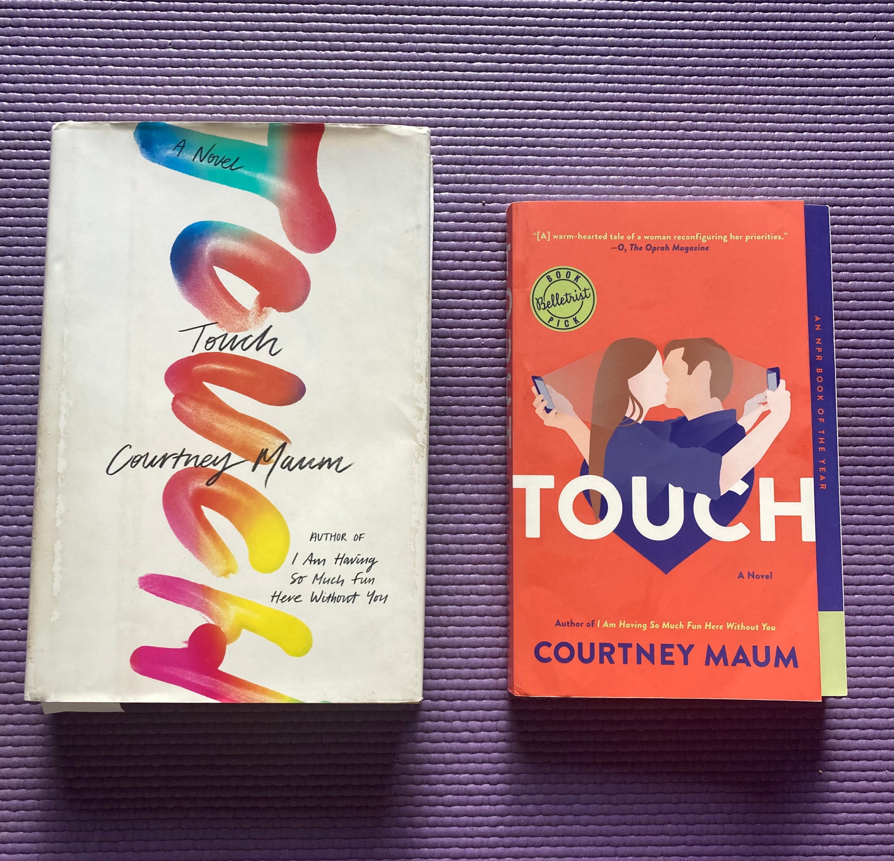 I was absolutely obsessed with the hardcover for my second novel, which is about a famous trend forecaster who goes rogue and predicts that touch, intimacy and “in-personism” will trend, not technology. Accordingly, the bold fingerprinted typeface felt impeccable. The novel came out right after Trump’s first election, however, and people #1) were not buying fiction and #2) did not have the presence of mind to stand in front of this book and try to sort out what it was about, which is why we went for a more heavy-handed depiction of the story’s plot in the paperback. It was chosen by a celebrity book club (Belletrist with Emma Roberts), so we stamped that news on the cover and did a beautiful stepback with the great press we’d received. (A “stepback” is the blue and green colored paper behind the cover in the paperback.)