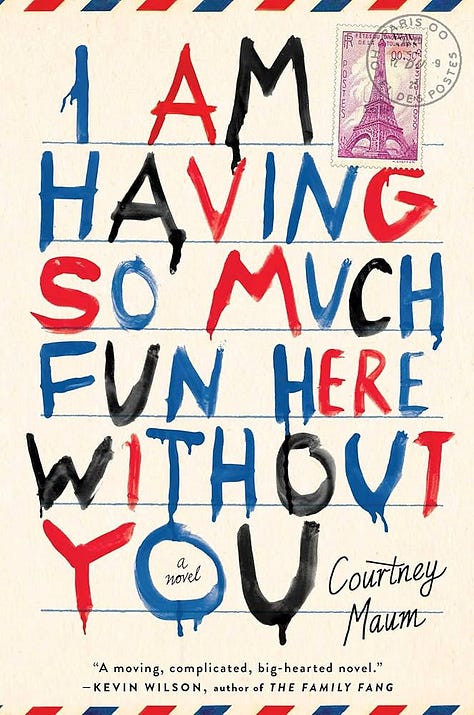 The hope is that everyone lands on one direction that feels right. Then the artist will flesh the chosen image out with color and a designed typeface. As you get closer and closer to the real design, you might see a “dummy” blurb positioned somewhere on the mocked-up cover with an “author of” line if you have previously published. My most successful novel so far is I AM HAVING SO MUCH FUN HERE WITHOUT YOU which is tricky as heck to fit on the cover of a book because it’s such a long title.